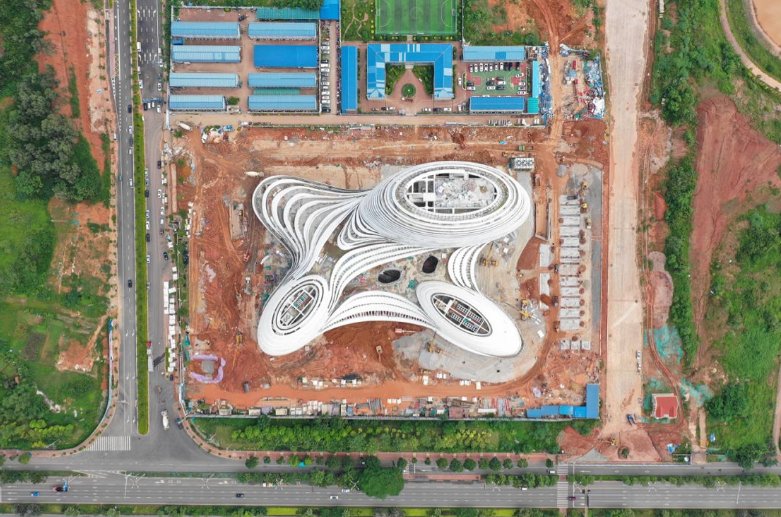 Resulta ser que los arquitectos que trabajaron en la edificación la construyeron inspirados en los campos de la región de Guangxi aunque en el resultado final no quedo muy claro.