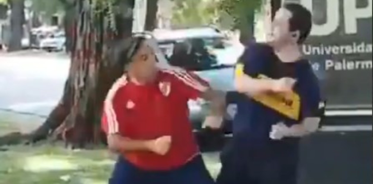 Pero la escena, según captaron los transeúntes con su celular, se tornó más violenta cuando un hincha de River salió al cruce y lo empujó, a lo que el hincha de Boca respondió con una trompada. Hubo un intercambio de golpes que duró pocos segundos hasta que los efectivos policiales se acercaron a separarlos.