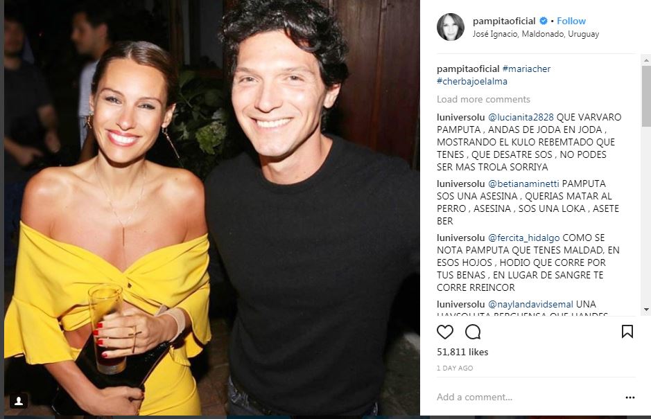 Los trolls se interponen a menudo en la vida de los famosos. Y esta vez le sucedió a Pampita, con una mujer que no paraba de agredirla de todas las maneras posibles en su cuenta personal de Instagram. “TENÉS MALDAD EN ESOS HOJOS, HODIO QUE CORRE POR TUS BENAS (sic todas las veces que haga falta). Lo curioso del caso es que las fans de la ex de Barrantes y Vicuña y ¿ex? de Pico Mónaco creyeron ver aquí una mano oscura. La mano de la China Suárez.