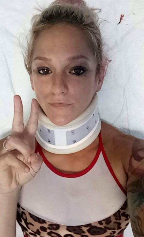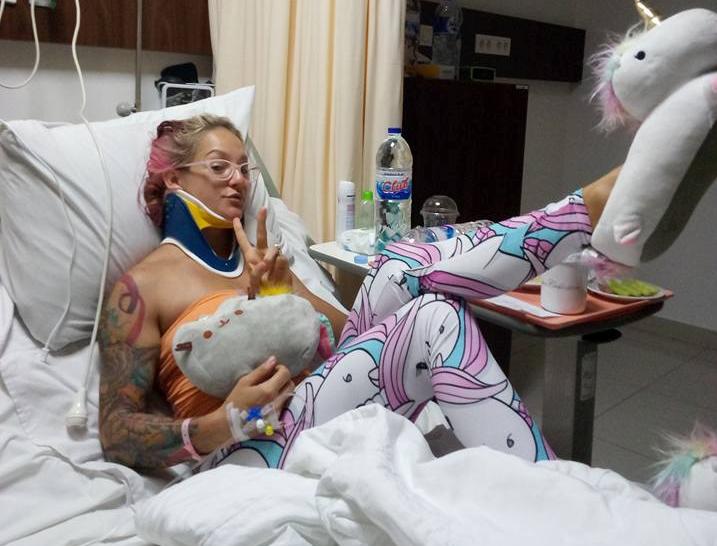 "Recibí 8 puntos de sutura en mi cabeza. Estoy hospitalizada en este momento. No estoy paralizada, puedo mover mis brazos y piernas, pero aún no puedo caminar. Mi columna vertebral no puede soportar mi peso, además estoy bastante débil y aturdida", afirma la joven estadounidense.