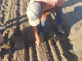 Pasando la etapa de armado de camas, donde la aplicación de Blocompost (pellet) es fundamental para mejorar la estructura del suelo, aumentando la retención de humedad sin comprometer el drenaje, y fomenta la actividad microbiológica del suelo.