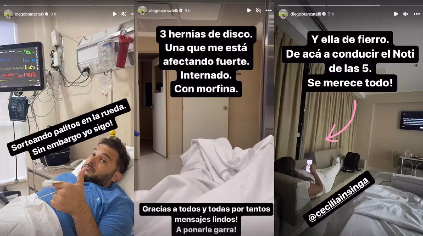 El periodista Diego Brancatelli fue internado de urgencia debido al malestar que tiene en la espalda tras haber sufrido tres hernias de disco. Por los dolores que padece, recibió un tratamiento especial con morfina.