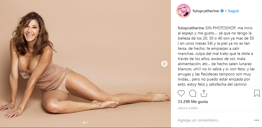 Además, Catherine aprovechó para dar un consejo a sus seguidoras más jóvenes, a las que incitó a aceptarse tal cual es cada una: “Ojo chicas por suerte es de a poco y por eso tenemos que trabajar y dedicarnos a ser mas lindas por dentro durante toda nuestra vida, no quejarnos tanto de todo, ser mas humanas y aceptar los cambios”.