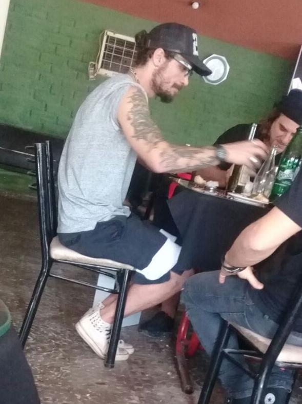 Antes del show el futbolista fue fotografiado almorzando junto a los músicos en un local de Media Agua. Anoche compartió el show de la banda en Mendoza y se espera que hoy suba al escenario de la Sala del Sol, en Luna Morena.