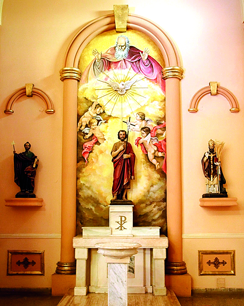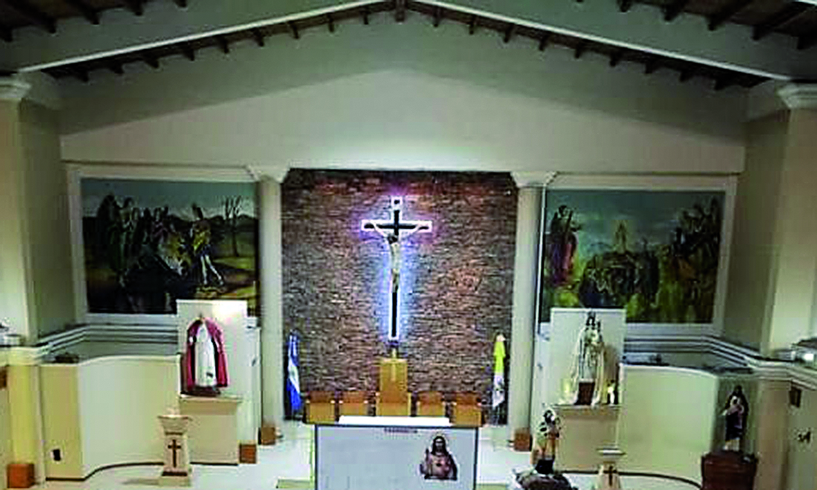 Varios memoriosos recordarán el mural que estaba en el altar de la Parroquia María Auxiliadora (Colegio Don Bosco). Durante décadas esas escenas bíblicas acompañaron a los fieles. Fue restaurado por Estela María Belvideri (fallecida en 2004), entre 1987 y 1988 (foto), pero tiempo después lo borraron. Actualmente (derecha) no hay rastros de ese mural.