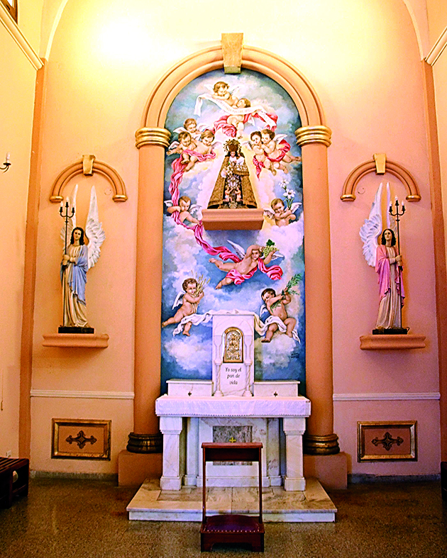El altar estaba pintado verde, así que le di pintura nueva, más celestial. También restauré los dos ángeles del frente, en celestes y dorados, muy delicados. Yo me iba a la parroquia con todas mis cosas para trabajar, pero a los ángeles me los traje, los tuve dos años en mi casa", describió Sierra, quien ha realizado varias restauraciones de imágenes religiosas y también es el creador -junto a Mario Pérez y Eduardo Esquivel- de la Virgen del Líbano que está en Rivadavia, cerca de la ex "hostería de Zonda". Entre otras cosas, en el ’96 fue el único de Cuyo en obtener una distinción en la Bienal de Arte Sacro y su obra se expuso en el Palais de Glace.