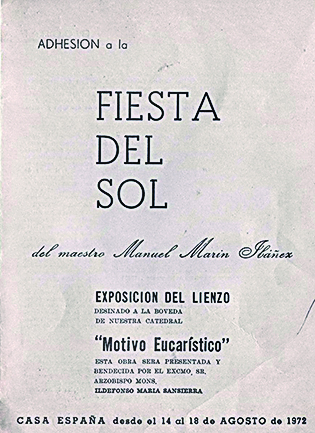 Su primo Gerardo Marín, nieto del artista, recuerda también que fue exhibido para una Fiesta del Sol en la Casa España, espacio que atesora otras obras suyas. Lo armaron en el piso y la gente subía y lo miraba desde los balcones, para apreciarlo en todo su esplendor. De hecho hay folletería que refrenda ese recuerdo y data el año de esa exposición: 1972.