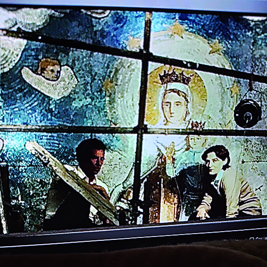 A pedido del padre José Juan García, a quien reconoce admirador de su producción artística, Mirta Romero confeccionó esa obra en vitrofusión, que está ubicada en el frente de la parroquia, en lo alto. "Es una elipse que tiene unos 2,50 m por 1,20 m aproximadamente, y que se ve tanto de adentro y de afuera, haciendo un juego con la luz del día y la noche muy bonito. Está la Virgen de Tulum y abajo hay como una destrucción, como del terremoto, un edificio colapsado y unos niños.