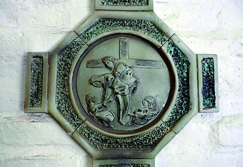 "Tomé idea de relieves y pinturas del románico catalán. Son alto relieves. Cada pieza tiene unos 60 cm en total", contó. El artista relató que llevó varios meses poder colocarlos en los muros de la capilla, ya que ensamblar todas las piezas fue un trabajo muy delicado que hizo Vilanova, en cuyo taller trabajaron.
