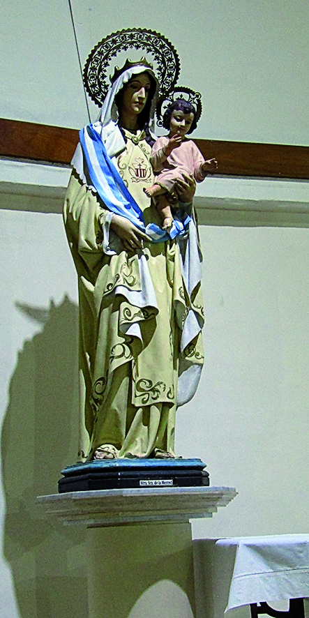 La imponente Virgen de la Merced que se encuentra en la parroquia de Caseros y Rivadavia fue restaurada por Analía Russo, hace ya varios años.