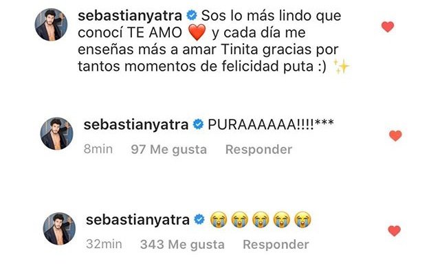 A esto, el artista colombiano respondió con un tierno mensaje: “Sos lo más lindo que conocí, te amo. Cada día me enseñás a amar más Tinita”, pero para finalizar añadió el fallido remate: “Gracias por tantos momentos de felicidad puta”.