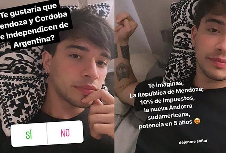 “¿Te gustaría que Mendoza y Córdoba se independicen de Argentina?”, preguntó Serrano en Instagram y habilitó las opciónes “Sí” y “No”, en modo encuesta, para que le contesten sus 2.9 millones de seguidores.