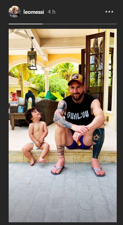 Este lunes, el goleador publicó una fotografía a bordo de un jeep en la playa junto a sus tres hijos, el menor de ellos en brazos, y Antonela. Además, difundió una historia junto a Ciro, aún en pañales, quien lo mira con una sonrisa pícara.