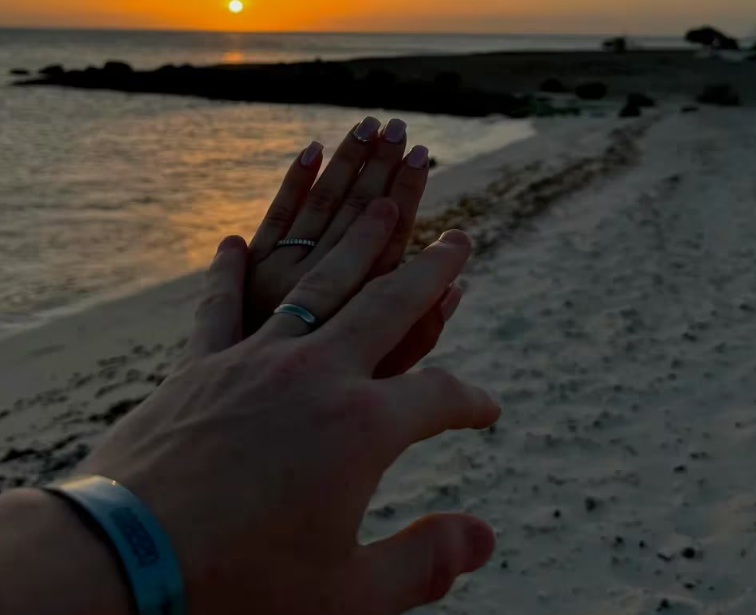 Pero la imagen que causó impacto es una en la que se ven una mano de cada uno mostrando anillos en su dedo anular y con el atardecer de fondo en plena puesta del sol. La imagen insinuó un posible compromiso de la pareja que según se muestran en sus redes sociales viven este romance con mucha felicidad.