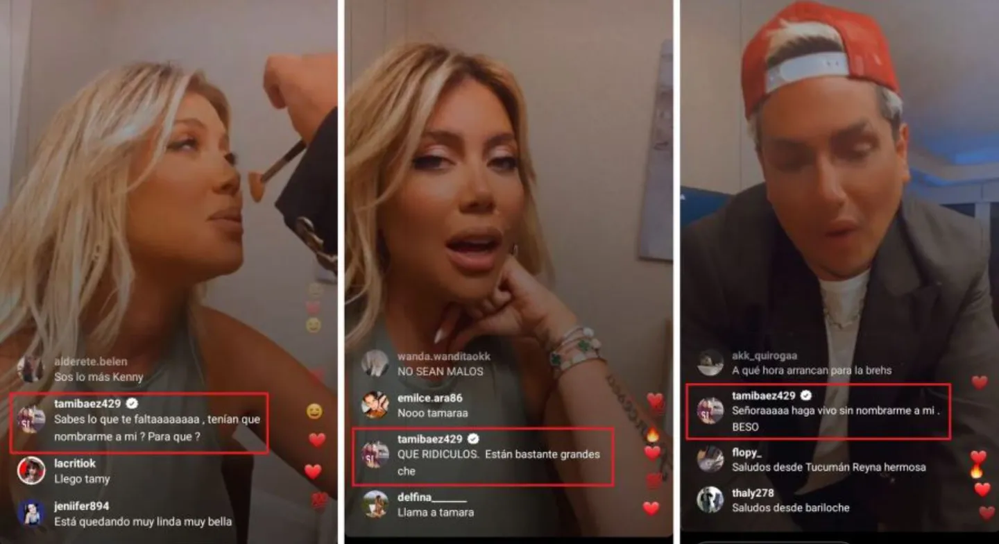 Una vez que L-Gante salió de la transmisión, Tami contraatacó desde el chat del vivo: “Sabés lo que te faltaaaaa. ¿Tenían que nombrarme a mí? ¿Para qué?”. Wanda, quien advirtió el descargo, mostró el mensaje a Kennys y éste le aclaró a la joven que si bien fue él quien la mencionó, no hubo ninguna intencionalidad ni mala onda de su parte.