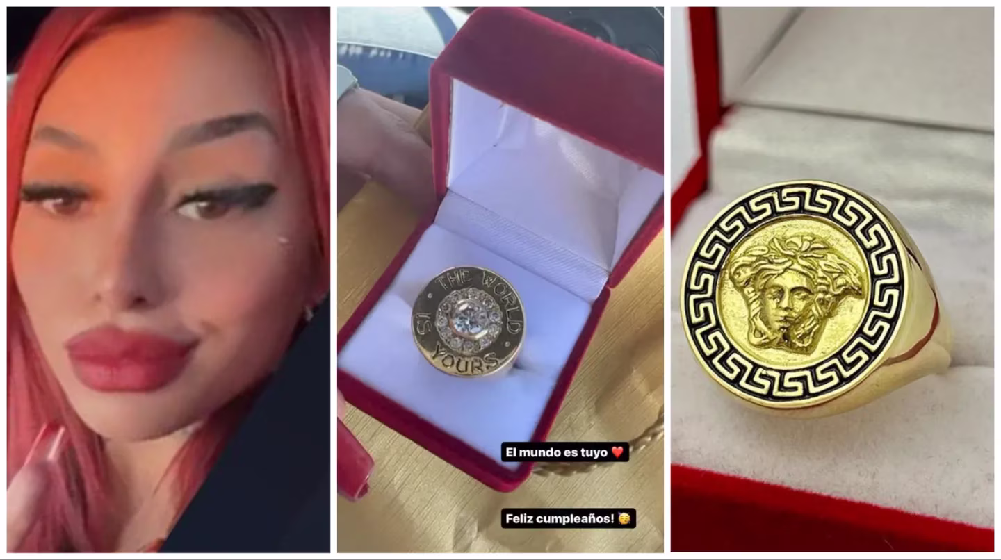 Sus seguidores quedaron sorprendidos con la publicación del costoso regalo que la influencer llevó para agasajar al padre de su hija: un maxi anillo en oro, con una gema tallada en el centro y la frase grabada “The World is yours” (el mundo es tuyo).