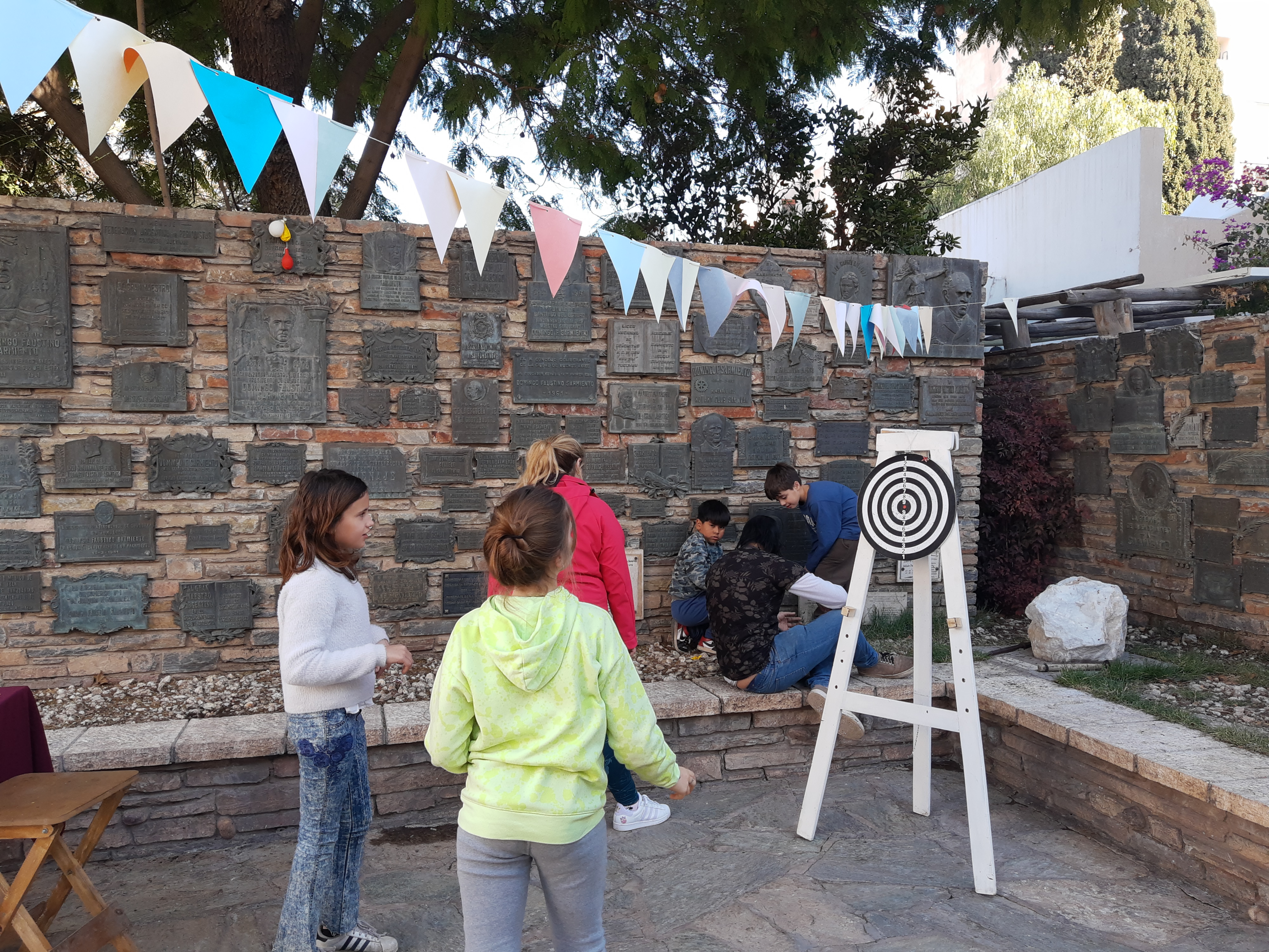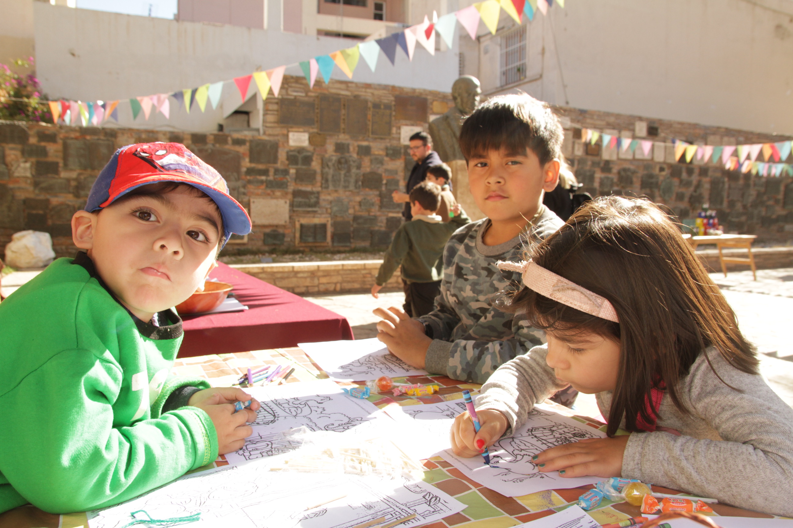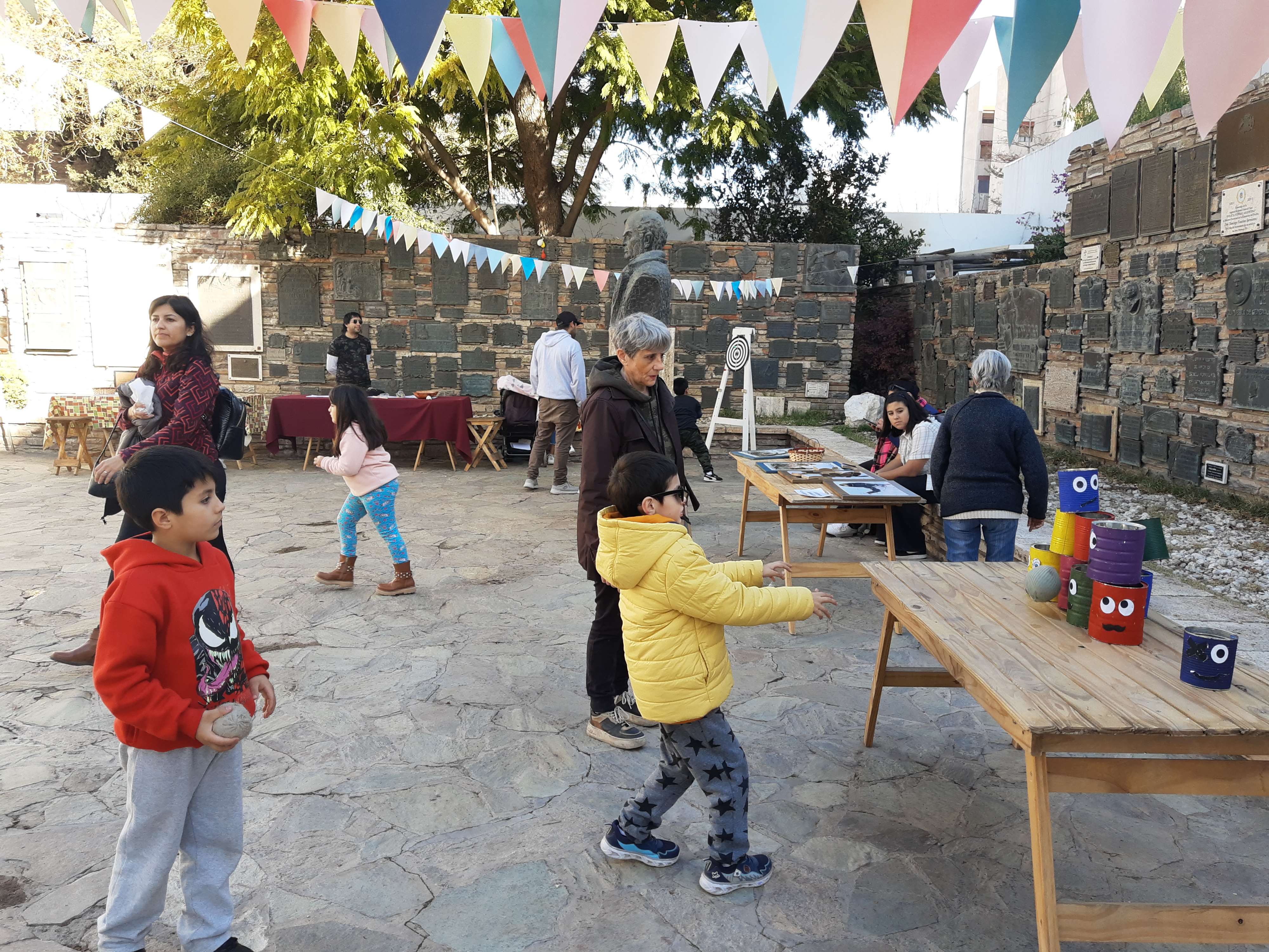 Tiro al blanco, ajedrez y jenga fueron algunas de las opciones, además de una estación para tumbar latas con una pelota y otra para embocar anillas. Los rompecabezas, algunos de tapas de diarios de época (El Mosquito), tuvieron muchos adeptos, al igual que un juego de pesca, en el cual los pescaditos tenían palabras con las cuales debían formar frases célebres del gran Maestro de América. También hubo dos mesones llenos de láminas y colores para pintar; y un mini-taller de telar de mano, donde los más grandes sacaron a relucir su talento artesano. Y para acompañar, canastas con golosinas y sopaipillas recién fritas que los mismos chicos amasaban y cortaban guiados por dos cocineras, para luego compartir.