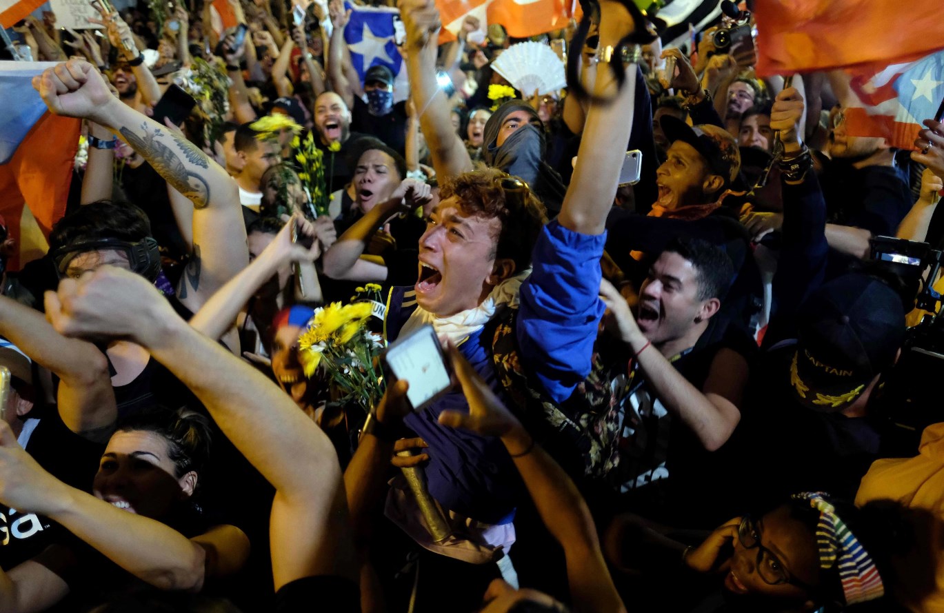 Inmediatamente se escuchó la alegría y los "olé olé olé" de cientos de puertorriqueños que desde la tarde protestaban a las puertas de La Fortaleza, la casa de gobierno, y que se quedaron bailando en el casco viejo de San Juan durante horas.