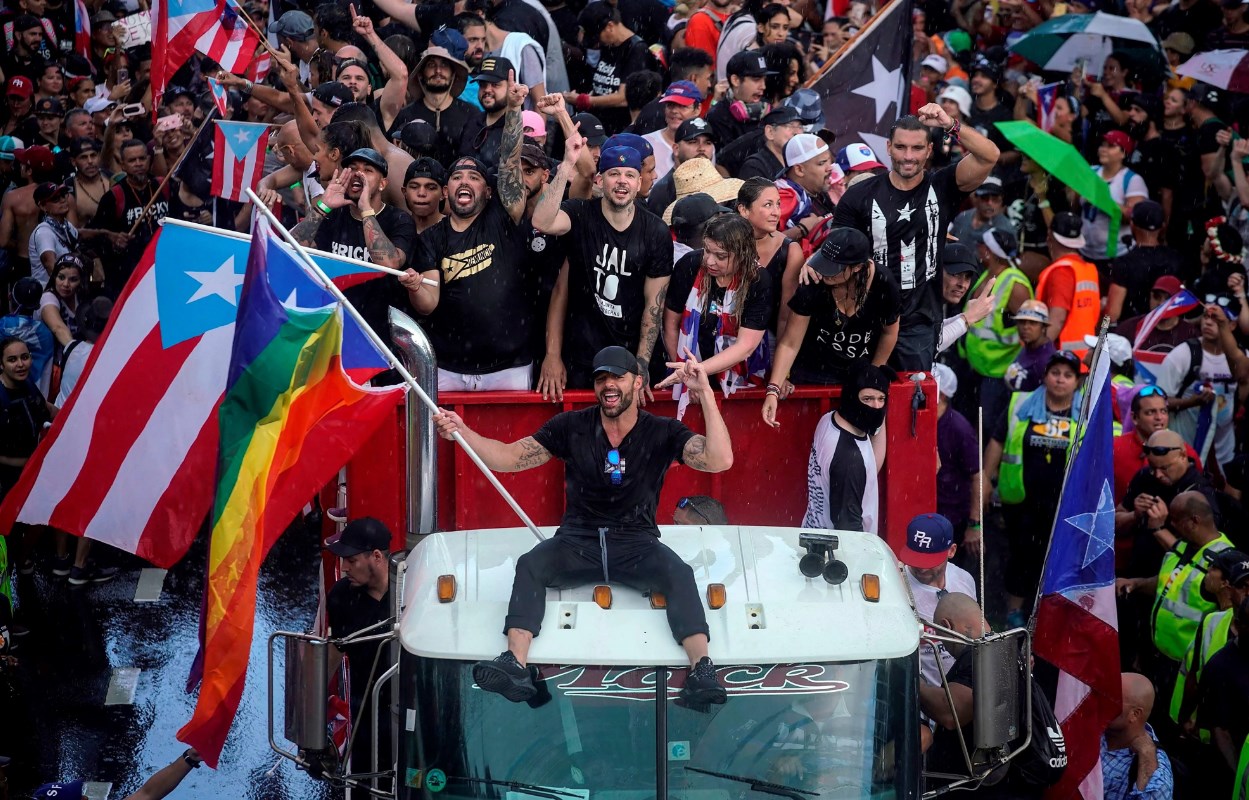 Daddy Yankee ("Dura", "Gasolina") se mezcló con la multitud en la marcha del martes, mientras Ricky Martin llegó subido al techo de una camioneta y ondeando una gran bandera del orgullo gay.