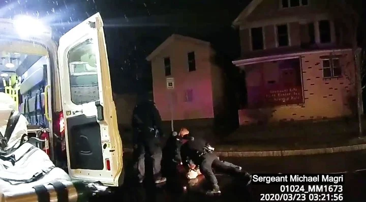 Después le pusieron una "capucha de escupir" blanca en la cabeza, un dispositivo destinado a proteger a los oficiales de la saliva de un detenido. En ese momento, Nueva York se encontraba en los primeros días de la pandemia de coronavirus.