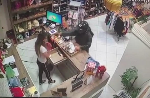 Armado, el hombre llegó al sitio de la motocicleta, entró a la tienda sin quitarse el casco y anunció el robo. Otras mujeres en la escena fueron al fondo del local. Amenazada por el criminal, Renata fue al cajero de la tienda, sacó el cajón y lo dejó en el mostrador.