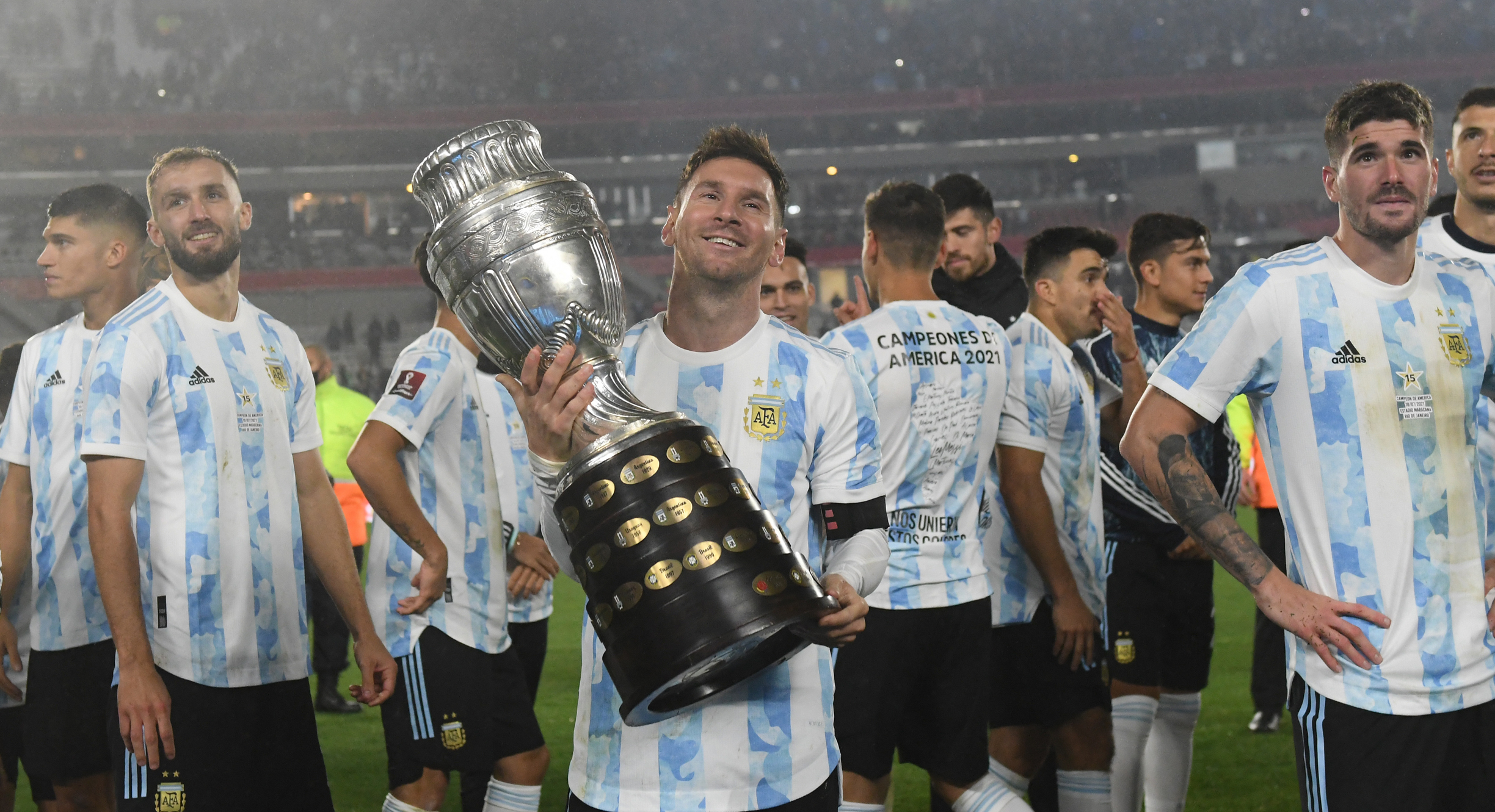 No se fueron a bañar como se había dicho. Apenas minutos después del final del partido ante Bolivia se dio el gran festejo luego de ganar recientemente la Copa América 2021 en Brasil. Todos los jugadores del plantel se cambiaron la camiseta por una que decía en su espalda "Campeones de América 2021".