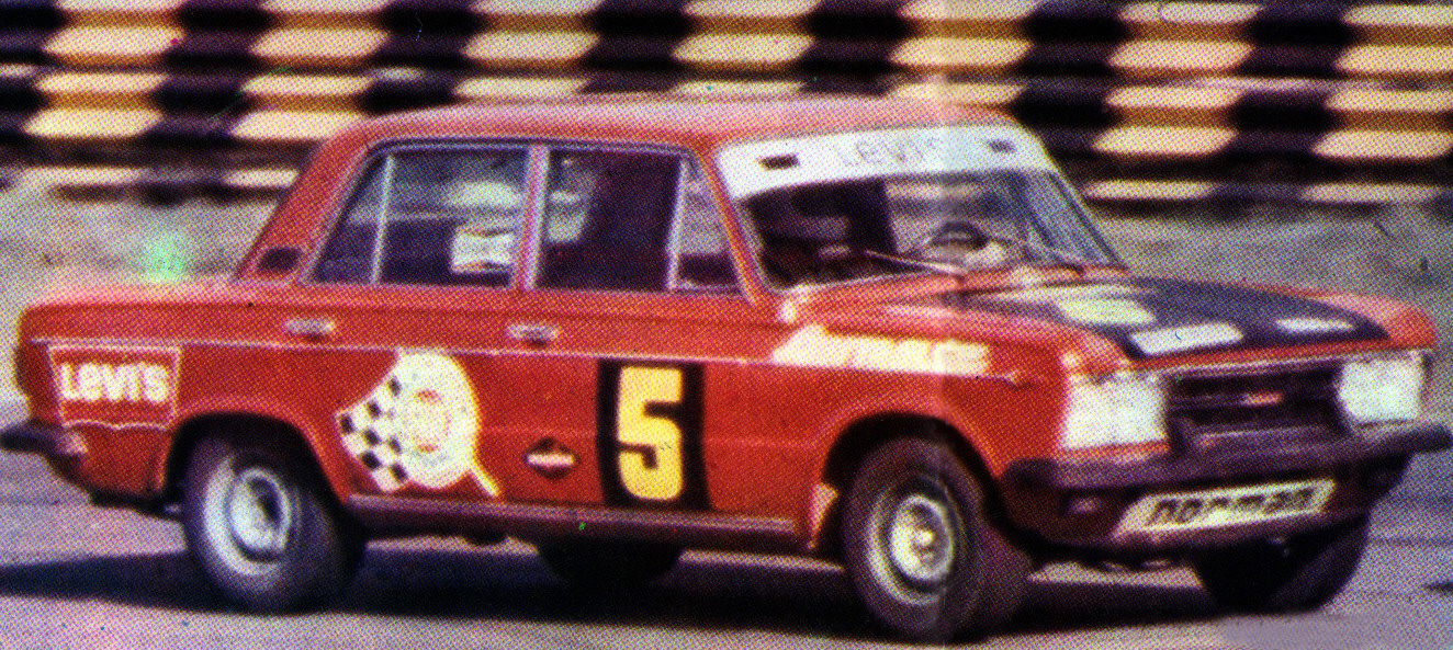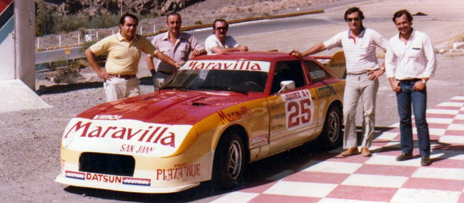 Cascote antes de largar una prueba del CAP (Club Argentino de Pilotos) con un Datsu ZX 280 de la categoría monomarca.