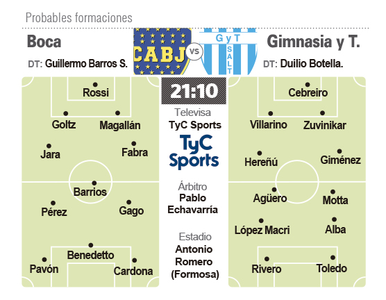 El capitán Fernando Gago, el batallador colombiano Wilmar Barrios y el versátil Pablo Pérez conformarán el medio, detrás de una línea ofensiva en la que permanecen Pavón y Darío Benedetto.