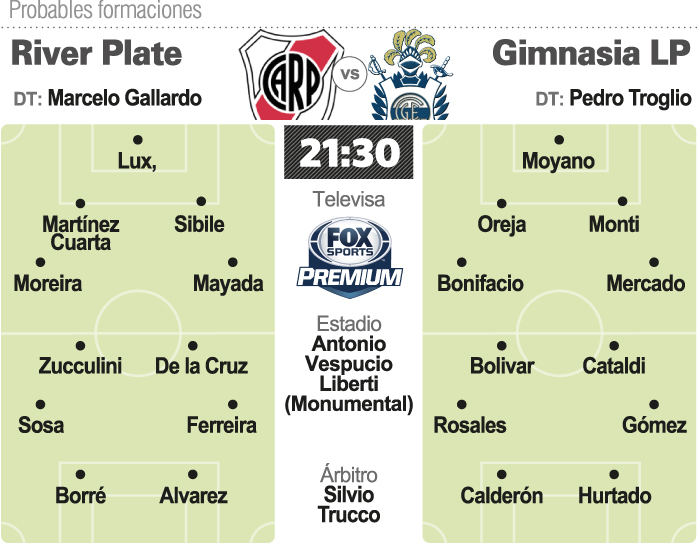 El Millonario y el equipo platense jugarán en el estadio Monumental, desde las 21.30. River y Gimnasia realizarán un trámite en la noche de Nuñez, el de enfrentarse por la Superliga con alineaciones alternativas con la mente en la gloria o el cadalso que les aguarda en pocos días. Este River-Gimnasia no se parecerá en nada al del pasado jueves en Mar del Plata y en el cual el equipo platense clasificó para la final de la Copa Argentina, luego de igualar 2 a 2 y vencer en la definición por penales; ambos equipos jugaron con titulares.