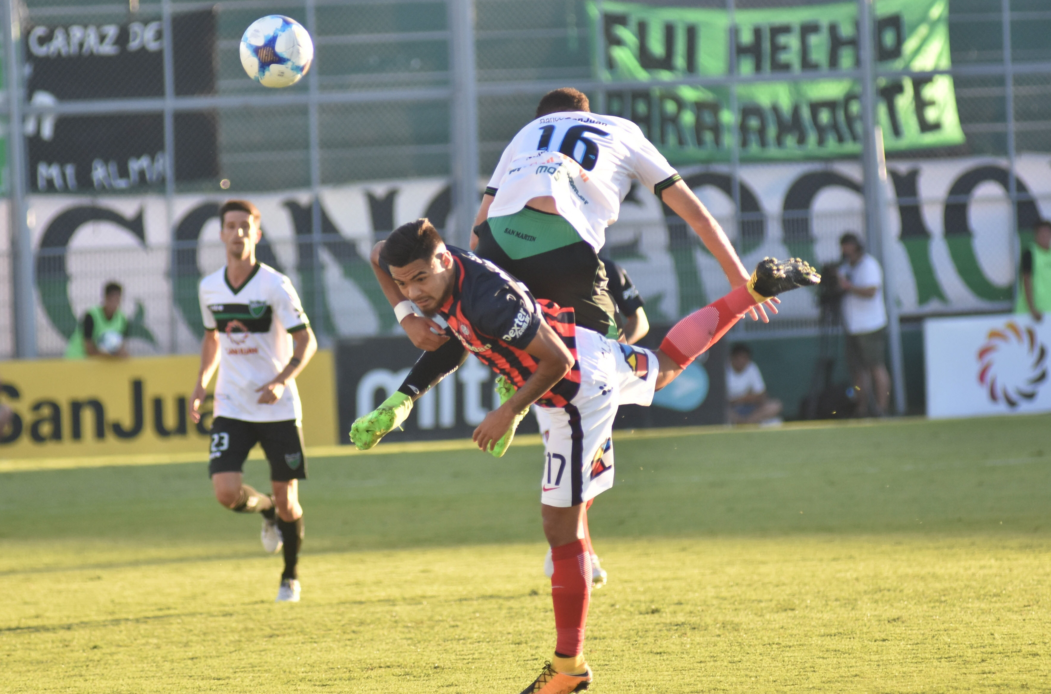En deuda. Claudio Mosca pelea la posesión del balón ante Paulo Díaz. El volante de San Martín no tuvo el desequilibrio que marca con su juego.