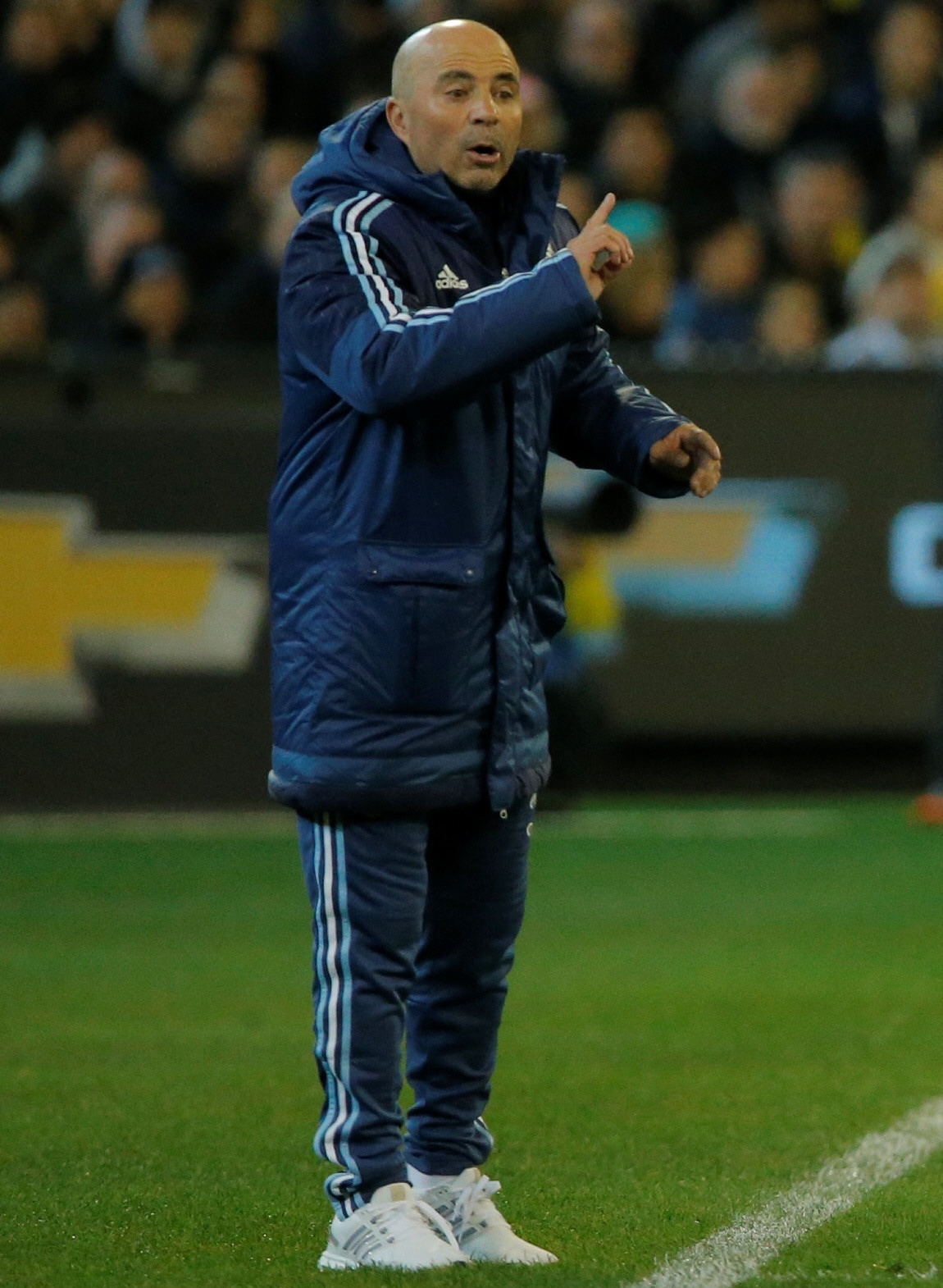 Los jugadores de River Enzo Pérez, Javier Pinola e Ignacio Fernández junto con el defensor de Boca Gino Peruzzi se reunieron ayer con el entrenador del seleccionado argentino de fútbol, Jorge Sampaoli (foto), en el predio de la AFA, en Ezeiza, donde repasaron conceptos de juego.