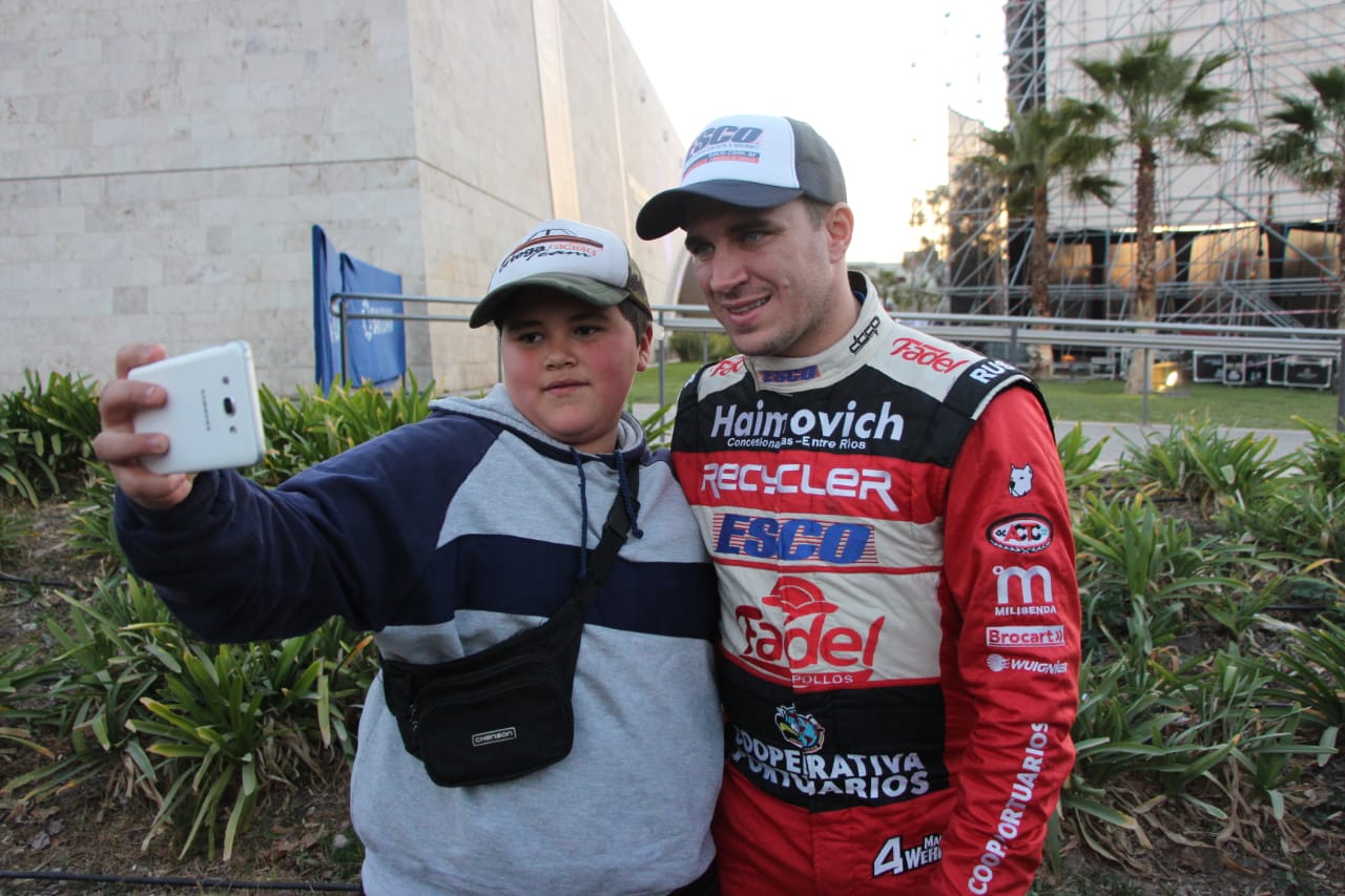 En la oportunidad, los amantes de los fierros se acercaron a la plaza del teatro y pudieron sacarse fotos con sus ídolos, como el caso del joven que se llevó un recuerdo con Mariano Werner.