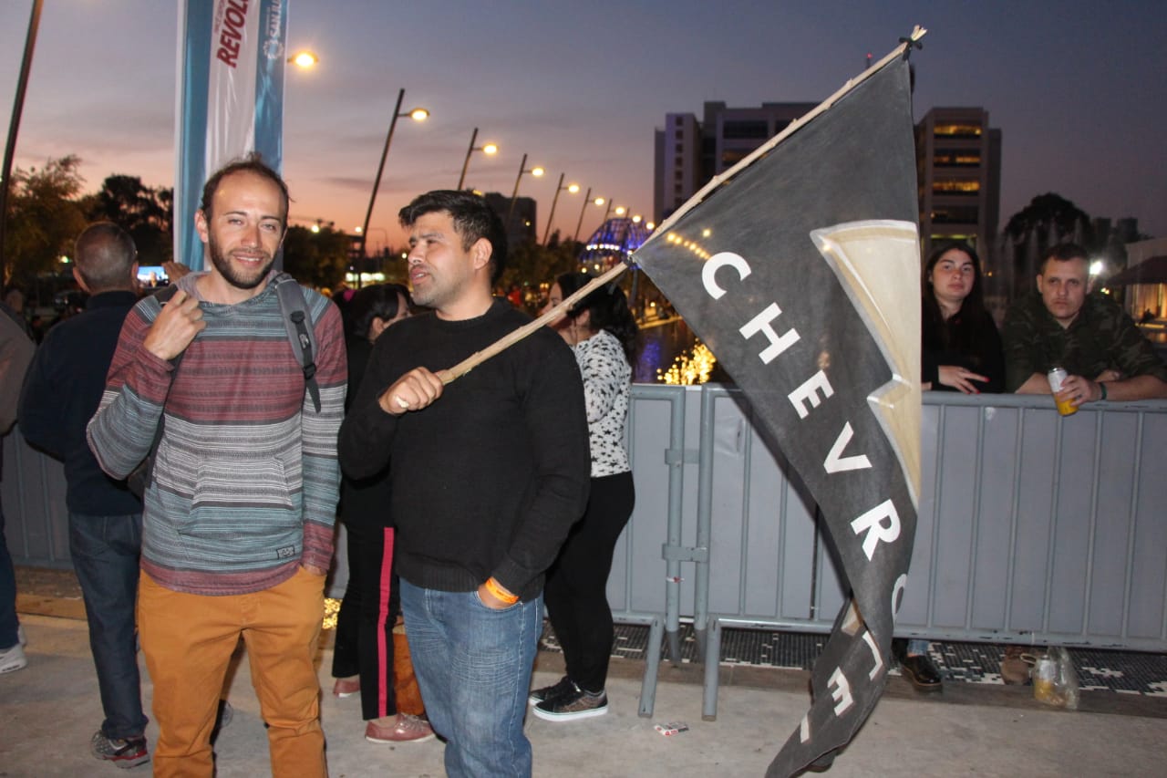 Además, propio del ambiente, la mayoría llegó con gorras, remeras y banderas de la escudería por la que alientan. Se ubicaron en las inmediaciones del teatro con el mate y disfrutaron de una noche agradable con toda la exhibición aérea y de las máquinas que estaban dispuestas en el lugar.