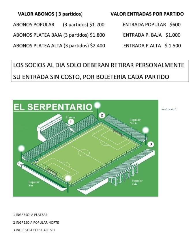 Si bien la disposición quedó sujeta a la habilitación del ingreso de público por parte del Consejo Federal, desde el club del Barrio Patricias Sanjuaninas explicaron que los socios deberán retirar las entradas sin cargo, tanto para el sector popular como así también para plateas baja y alta, por la boletería del club los días jueves 30 de septiembre y viernes 1 de octubre de 17 a 21 y el sábado 2 de octubre de 10 a 14. "El día del partido no se entregarán entradas sin cargo a los socios", adelantaron.