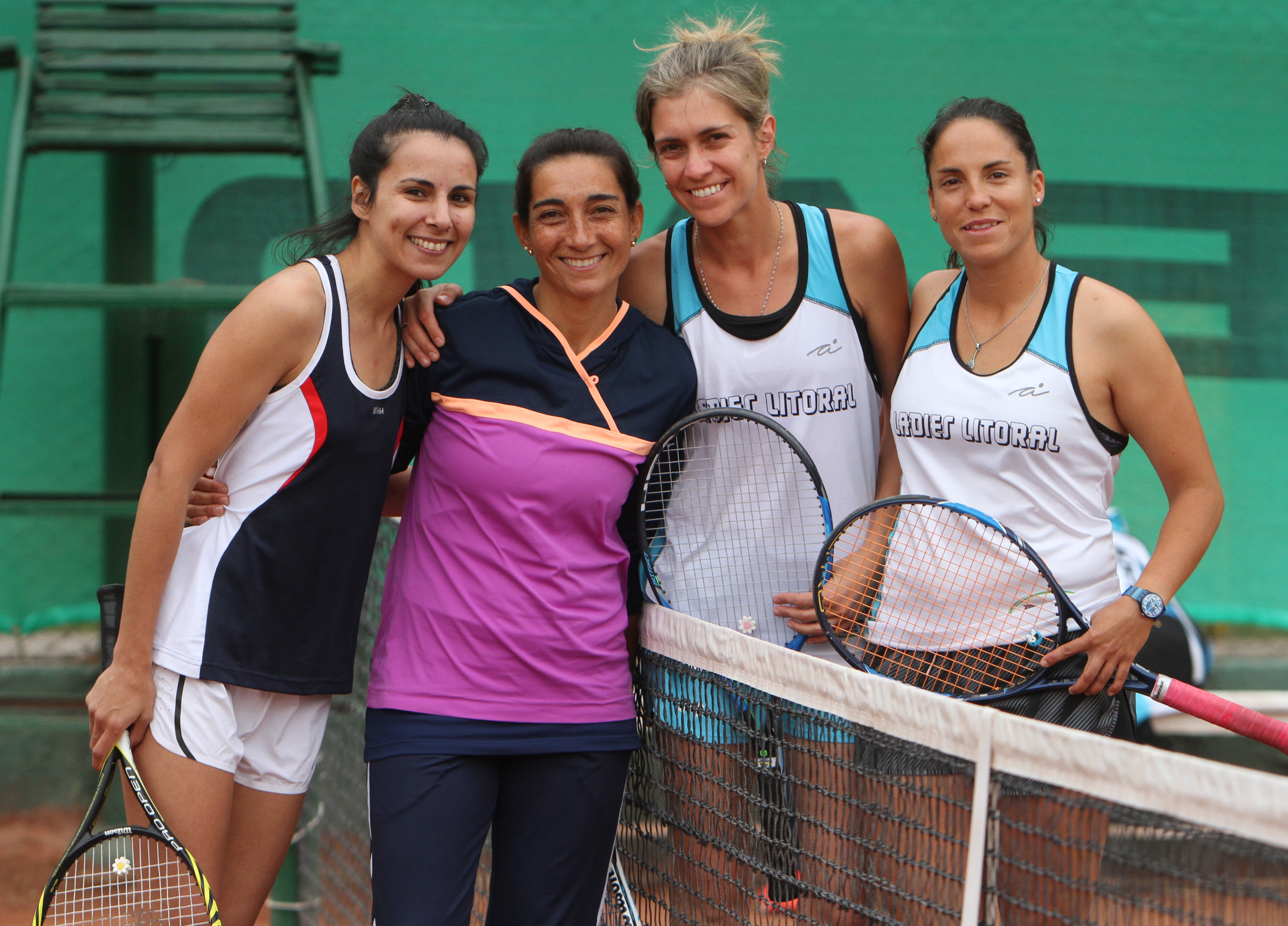 Vienen de lugares distintos pero todas están metidas de lleno en el Torneo Nacional Femenino de Clubes de tenis, en las categorías veteranas, que tiene epicentro en nuestra provincia. La sonrisa para la foto de Alexia Malbran, Luciana Ludueña, Gabriela Yanet, María Pía Carranza, Claudia Nitsevich y María Celeste Saneria.