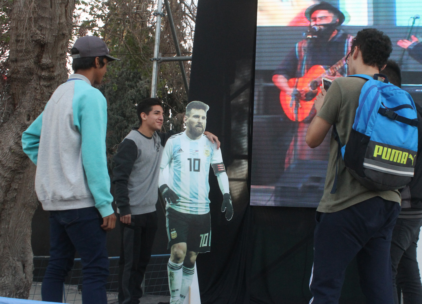 Gigantografía de Lio Messi, el Kun Agüero y Mascherano, entre otros, sirvieron para que los sanjuaninos se sacaran fotos como si estuviesen con sus ídolos.