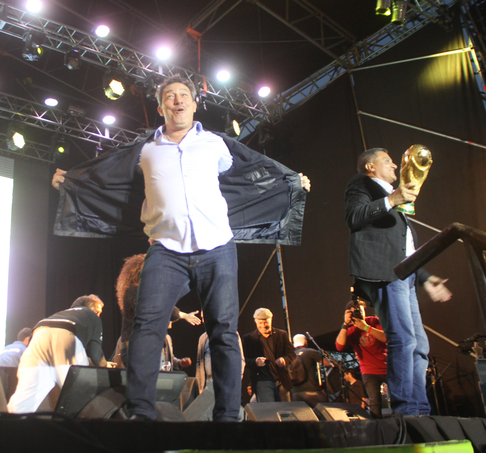 El baile del Chino. Carlos Tapia, el ex campeón mundial del "86, se animó a bailar en el escenario mayor.