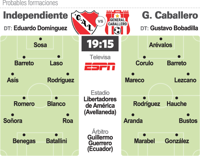 Independiente recibirá a General Caballero de Paraguay en busca de su primer triunfo en el torneo internacional, en un encuentro correspondiente a la segunda jornada del Grupo G de la Copa Sudamericana.