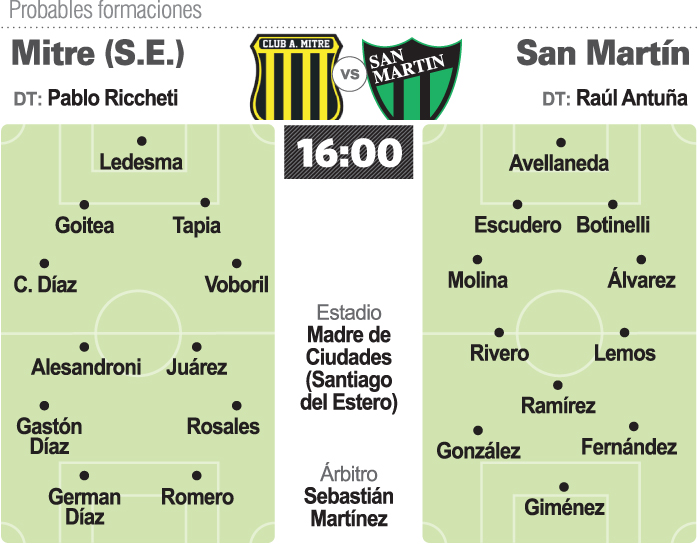Hoy de nuevo tendrá una misión difícil. Es que visitará a Mitre de Santiago del Estero (16 hs), un equipo al que tiene por debajo en las posiciones pero que, como local que es, el peligro está latente. El Verdinegro, que presentará los mismos once que el domingo pasado, tiene la chance de reafirmar la buena senda por la que transita. Seguro que los de Antuña no se guardarán nada e irán al ataque aunque con otras precauciones.