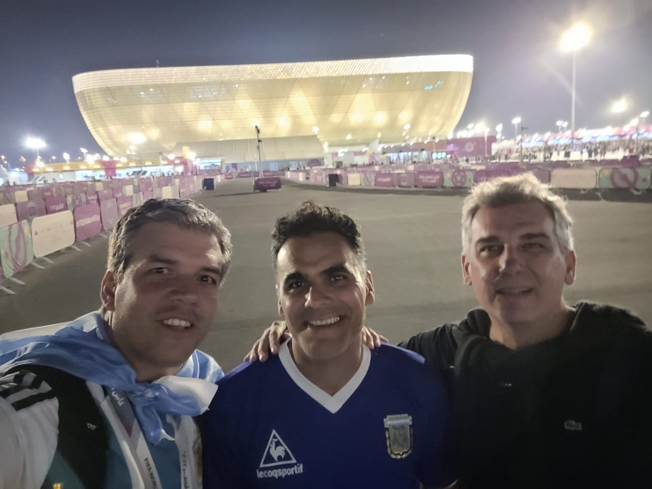 Otro grupo de sanjuaninos es el conformado por Fernando Alamino, Lucas Pringles y Ramiro Villegas. Los tres llegaron al estadio de Doha una hora antes del partido y se ubicaron detrás de uno de los arcos para hacerle el aguante a la Albiceleste.
