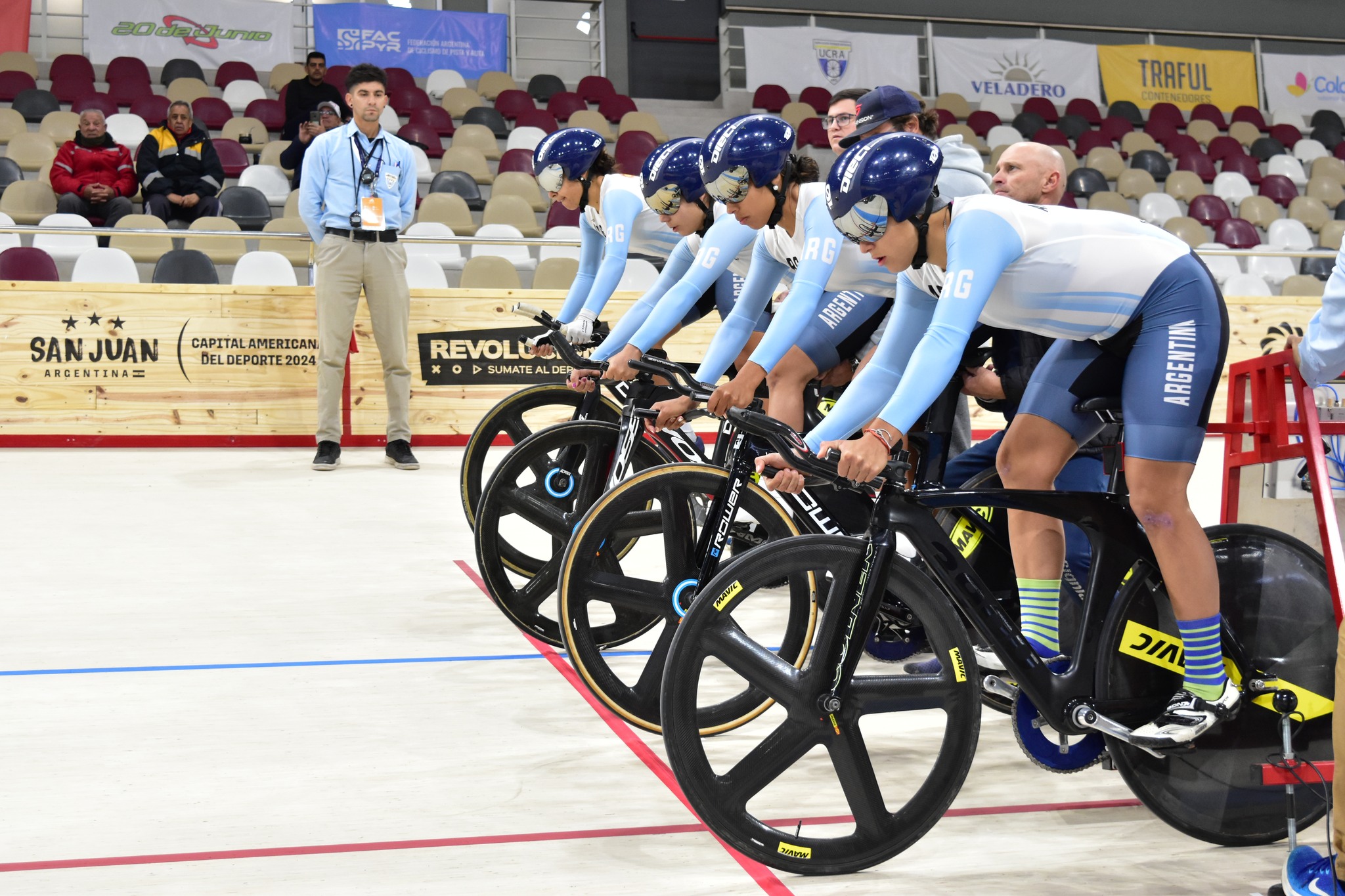 En la Velocidad Olímpica masculina, Argentina (Lucas Vilar, Juan Rodríguez y Alejo Vetique) obtuvo el 6to tiempo con 45.199 y su cruce en cuartos de final fue con México donde cayó con un tiempo de 44.699. En la Velocidad Olímpica damas, Argentina hizo el 4to tiempo con 50.009; en los cruces cayó ante USA con un tiempo de 50.016 (Valentina Luna, Milagros Sanabria y Natalia Vera).