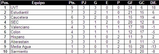 En el inicio de la tercera fecha del Torneo Apertura de Hockey sobre Patines, UVT derrotó a Caucetera y quedó solo en la cima de la tabla de posiciones. Fue 10 a 3, con goles de Mariano Ortiz (4), Carlos López (2), Gastón Ortiz, Federico Balmaceda, Victor Núñez, Mauro Menéndez.