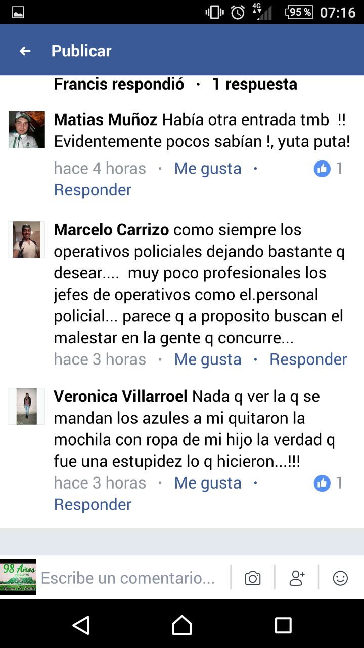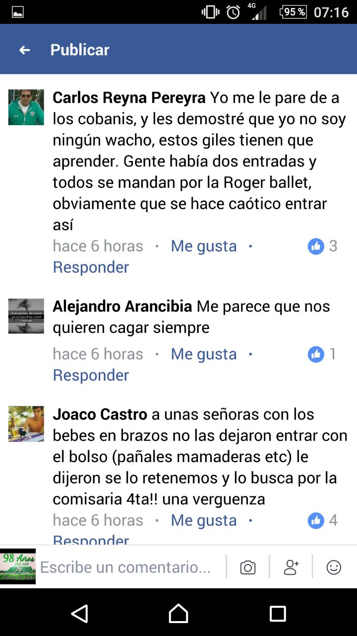 Facebook se plagó de mensajes con denuncias de simpatizantes y, entre los casos más llamativos, contaron que a una mujer que iba a entrar a la cancha con un bebé le quitaron un bolso con pañales, mamaderas y otros elementos, y luego le dijeron que busque todo en la Comisaría Cuarta.