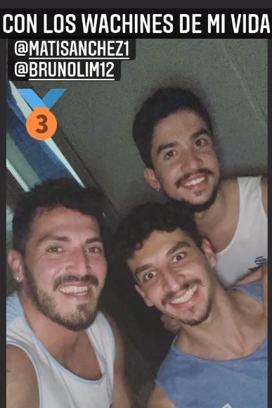 "Los wachines de mi vida", escribió junto a una foto con Matías Sánchez y Bruno Lima, los otros locales que por estas horas disfrutan del reconocimiento mundial.