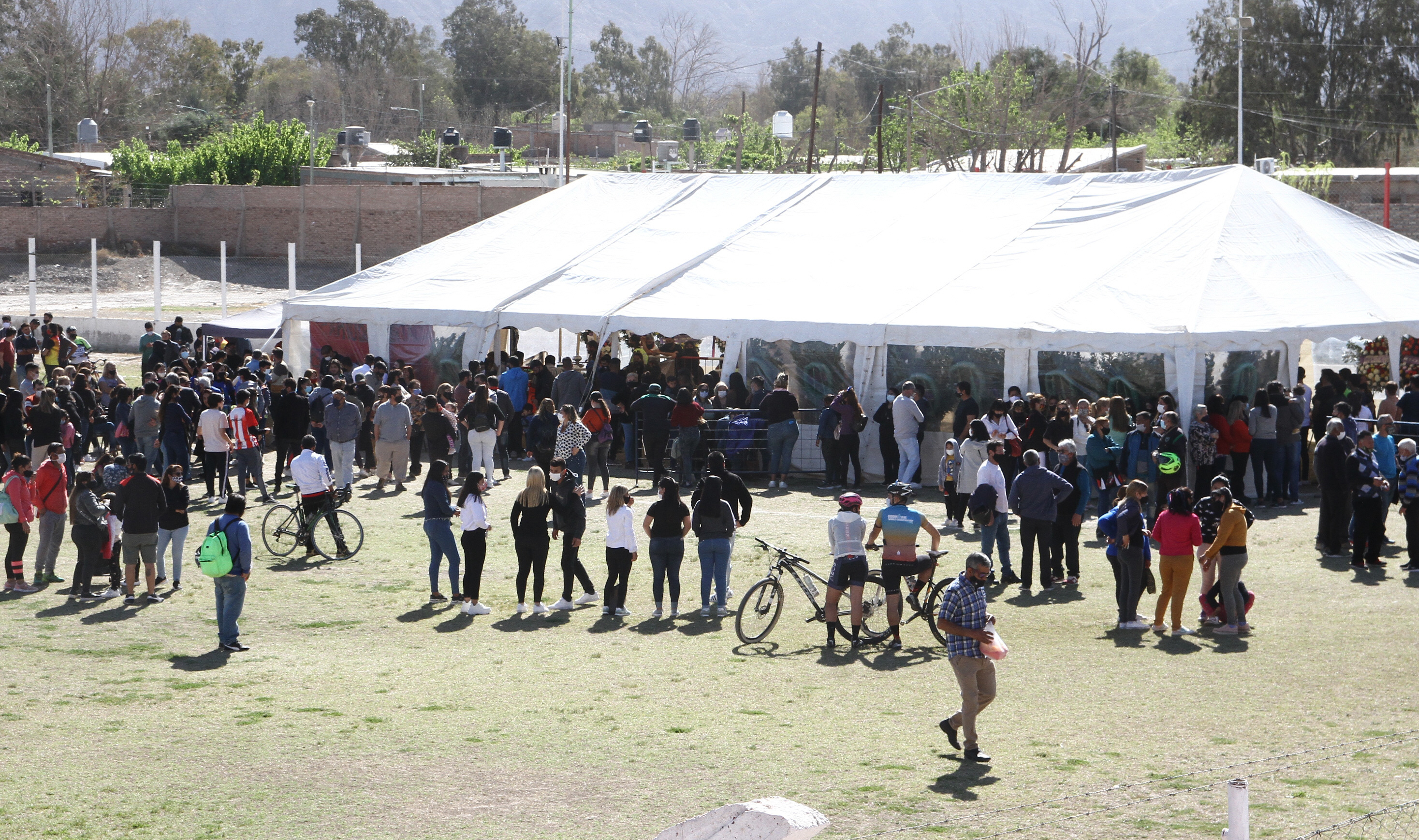 El Club Sportivo Rivadavia, en su Bebida natal, fue el escenario elegido para el velatorio y en donde durante toda la siesta hubo una fila interminable de aficionados que querían brindarle el último adiós. "Despertate hijo", acompañado de un grito desgarrador de su mamá Perla, causó el llanto de todos los presentes ayer al mediodía. Su esposa Gisela también se mostró desbordada por la emoción durante toda la jornada.