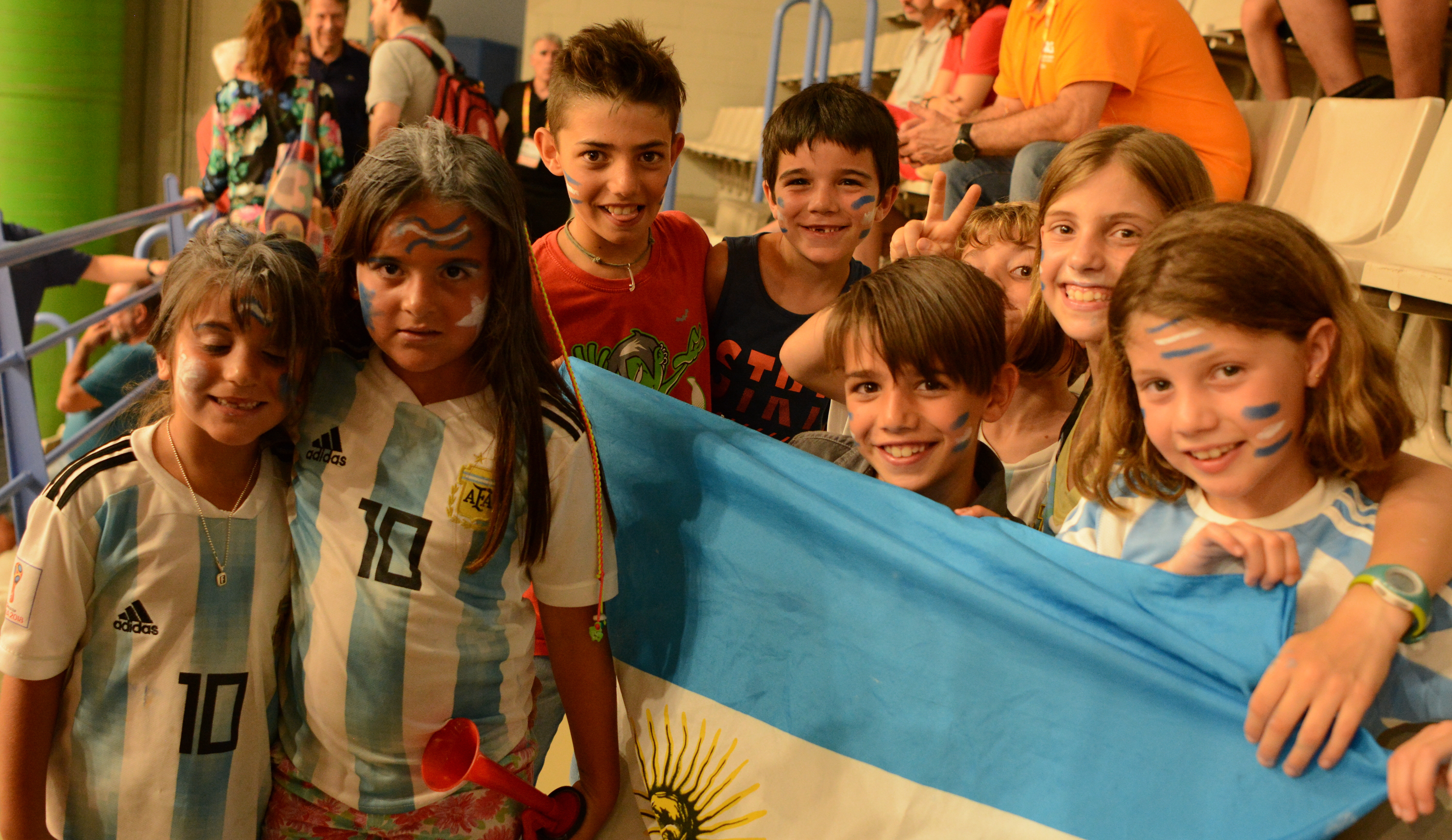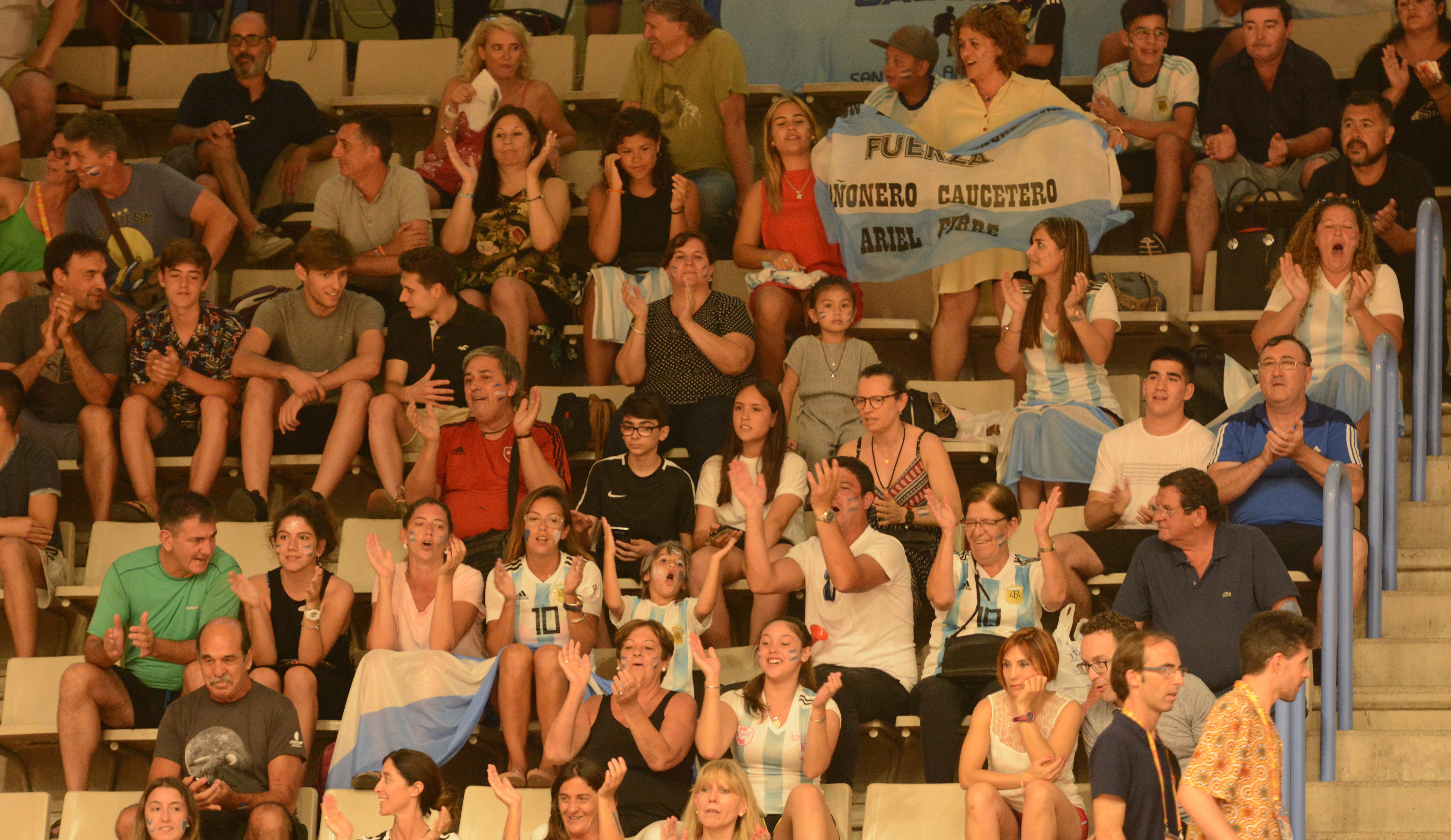 La hinchada argentina sumaba casi un centenar de personas. Esto para los 2.000 hinchas españoles era poco, pero igual se hacían sentir a la hora del aliento a los chicos del Sub-19 albiceleste.