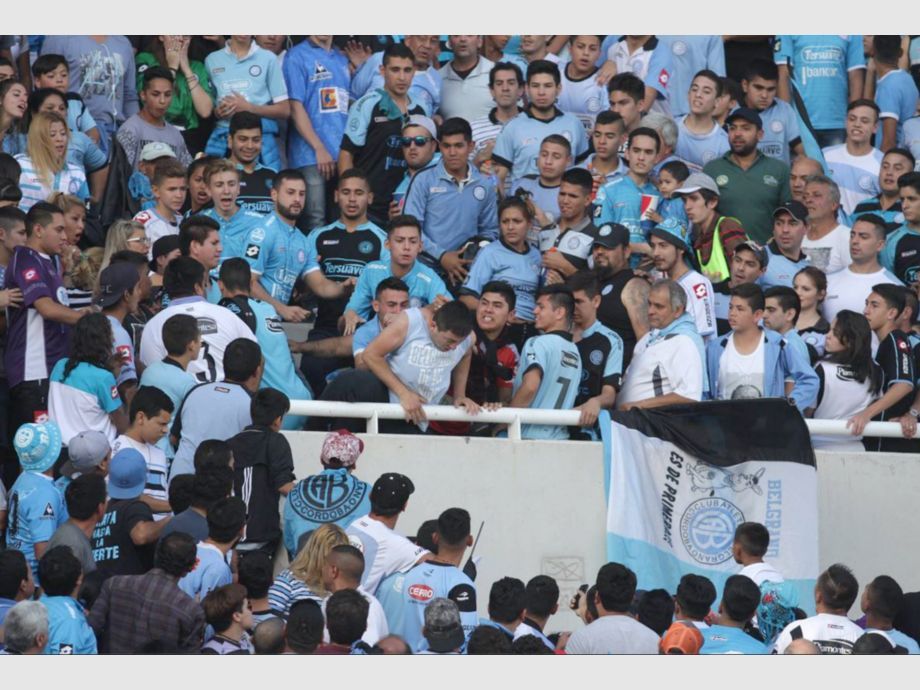 Al verse en inferioridad, Balbo quiso escapar y saltar por una de las bocas de salida de la tribuna, pero fue lanzado con vehemencia por al menos tres hinchas, como muestran imágenes fotográficas que captaron el momento preciso de la caída.