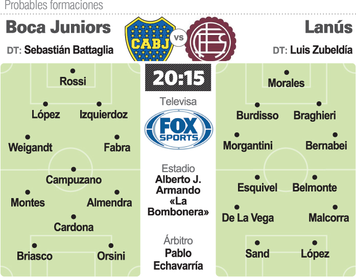 Los "Xeneizes" tienen 21 puntos en el torneo doméstico y quedaron lejos de la lucha por el título al caer en el Superclásico el domingo pasado en Núñez ante el líder River (30) por 2 a 1, lo que seguramente modificará los objetivos hasta fin de año y dará prioridad a la Copa Argentina, donde enfrenará en semifinales a Argentinos Juniors o San Telmo. En Boca, el entrenador Sebastián Battaglia ensayó durante la semana con la intención de recuperar el estilo perdido en las últimas presentaciones, y con cuatro modificaciones en relación al equipo de la fecha pasada. Los que ingresarán serán Marcelo Weigandt, Lisando López, Rodrigo Montes y Norberto Briasco, y los que saldrán serán Luis Advíncula, con el seleccionado de Perú, Marcos Rojo, expulsado ante River, Diego González y Cristian Pavón. Battaglia insistirá con el colombiano Edwin Cardona para la generación de juego, pese a que su lentitud contrasta con el aporte que ofrece el juvenil Aaron Molinas. En tanto, los otros partidos de hoy serán: Sarmiento-Aldosivi (13.30), Argentinos-Defensa y Justicia (13.30), Patronato-Racing (15.45).