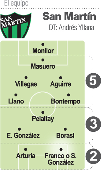 El plantel entrenó en la mañana de este jueves y a las 18 emprendió el viaje a Buenos Aires, para instalarse hoy y moverse para terminar de ajustar detalles para el choque del sábado a las 21,15 contra el Gallito que quedó en zona de descenso tras jugarse la cuarta fecha, después de perder 2-0 contra Defensores Unidos. Las confirmaciones en San Martín son mayoría y solamente resta saber quien acompañará a Marcos Arturia en el ataque: la potencia de Franco o la sutileza del Pulpito González. Mariano Monllor será el arquero, en la línea de fondo José Villegas, Abel Masuero y Augusto Aguirre serán los zagueros, Manuel Llano y Leonel Bontempo irán por los costados. Mientras que en el mediocampo, Ezequiel González, Nico Pelaitay (quien llega con 4 amarillas) y Benjamín Borasi son los nombres decididos. Más arriba, la movilidad de Arturia con Franco o con el otro González.