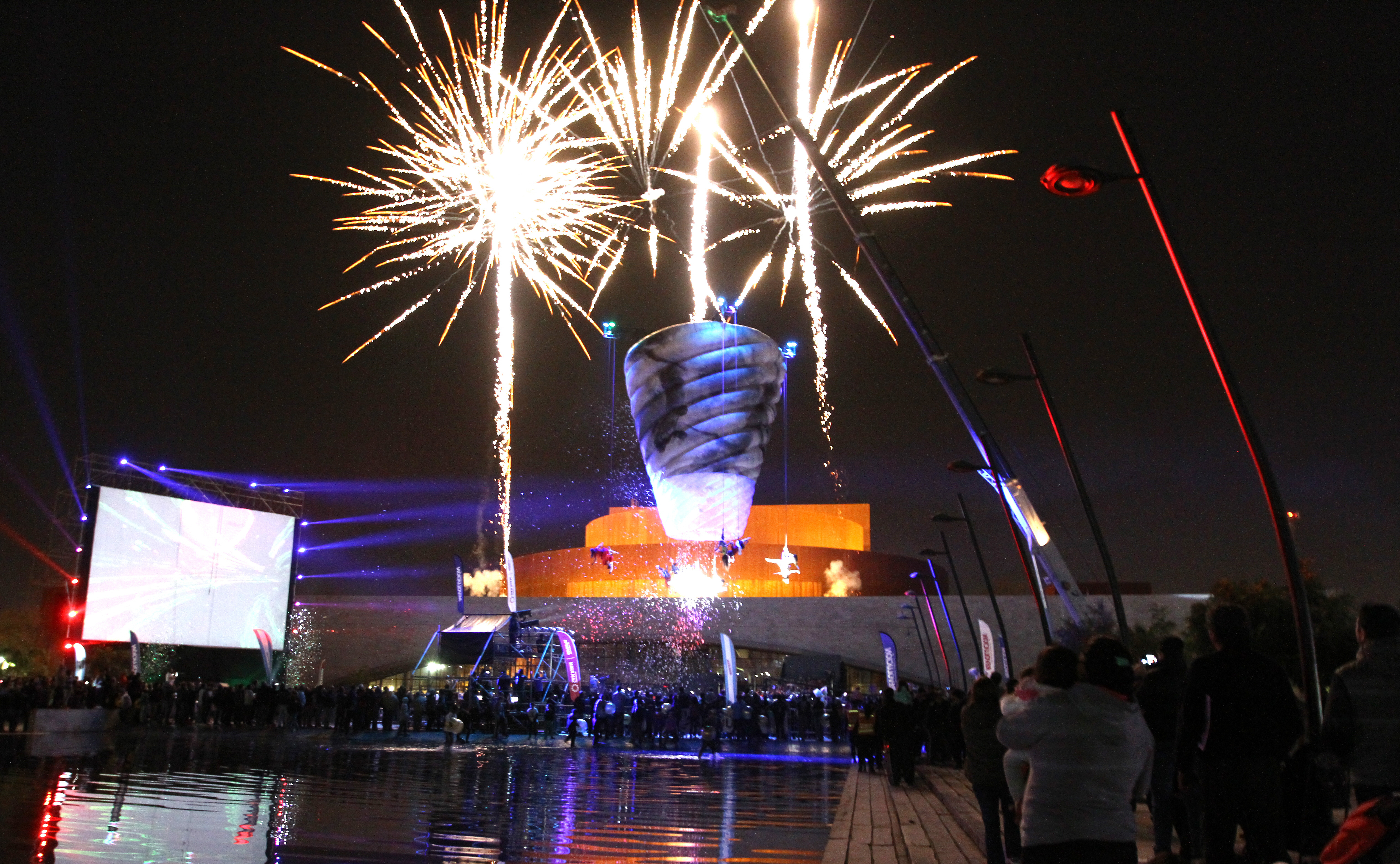 Exactamente a las 20.02 se apagaron las luces y toda las miradas se dirigieron al cielo. Fueron seis minutos de un show aéreo impactante que causó asombro en los aficionados del mundo motor que se dieron cita en el Teatro del Bicentenario para vivir el sorteo con el que se armó la grilla de partida. De esta manera la apertura de la 10º fecha del Turismo Carretera fue diferente y se ganó los elogios de todos.
